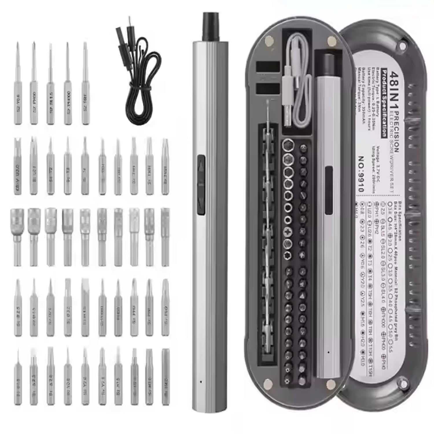 - Upgraded Excellent Quality- 48 in 1 precision electric screwdriver set designed with durable aluminum alloy surface, equipped with 45pcs high-quality S2 steel screwdriver magnetic bits. The pen-shaped body is ergonomically designed and easy to grasp.