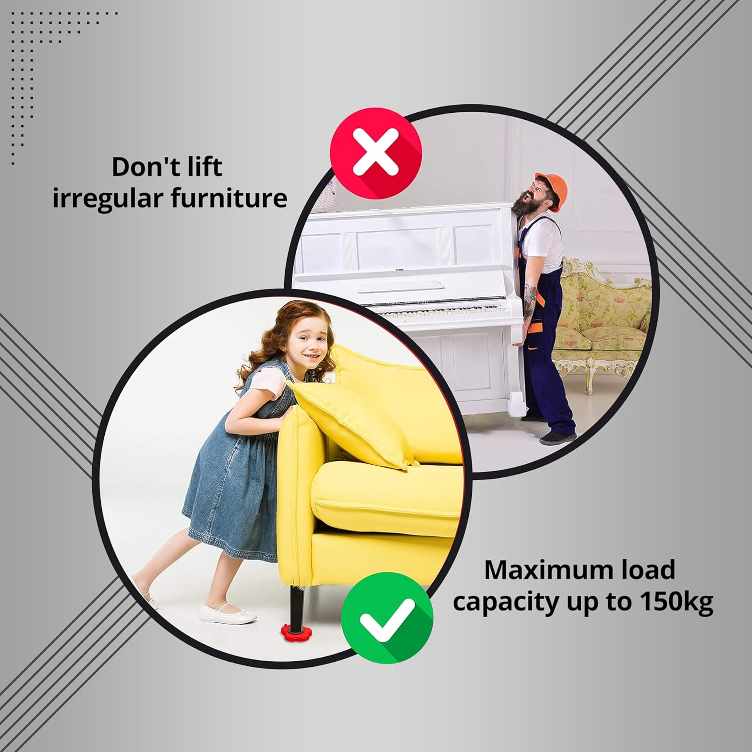 - Load Capacity: The Furniture Lifter and Mover is capable of handling weights up to 150 KG / 330 pounds, making it effortless to move furniture and heavy objects with ease.