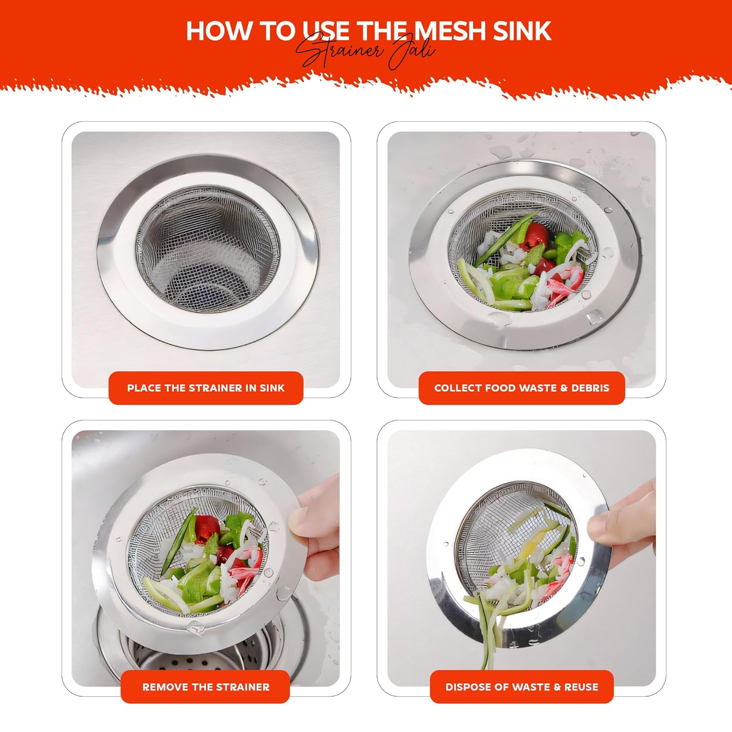 Sterinox Stainless Steel Sink Strainer for Kitchen and Bathroom – Anti-Clog Mesh Drain Cover